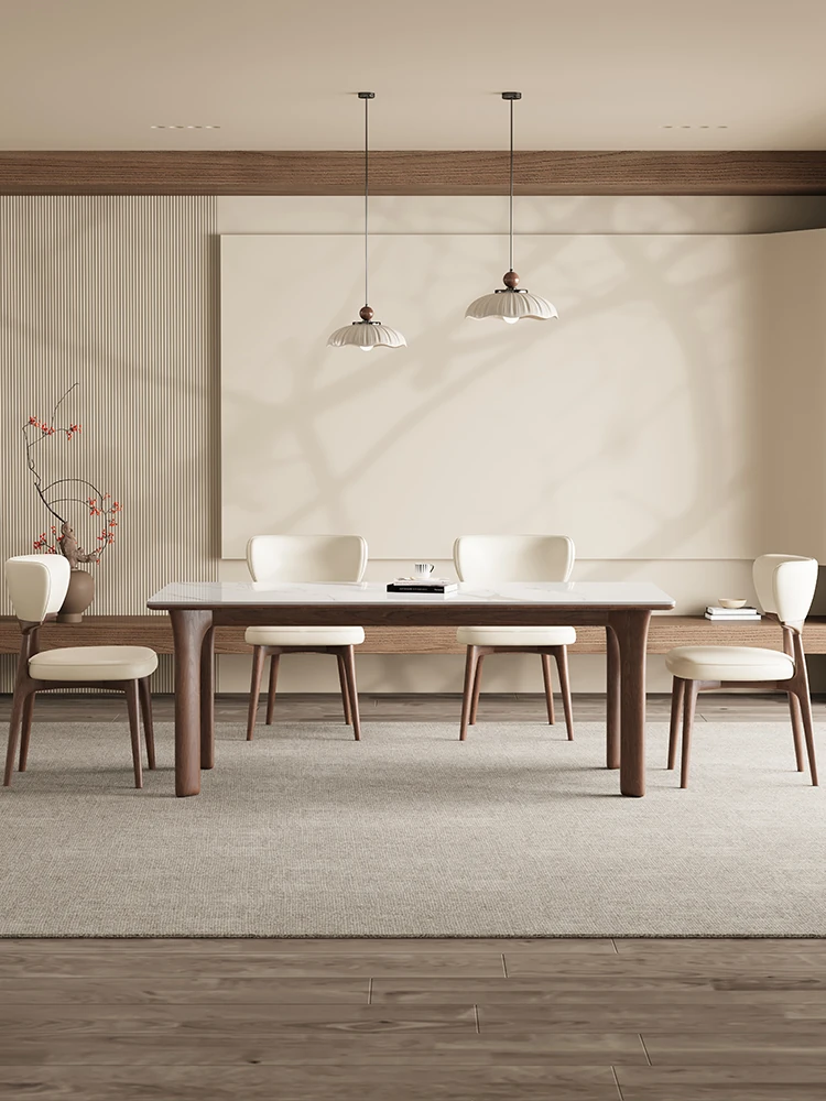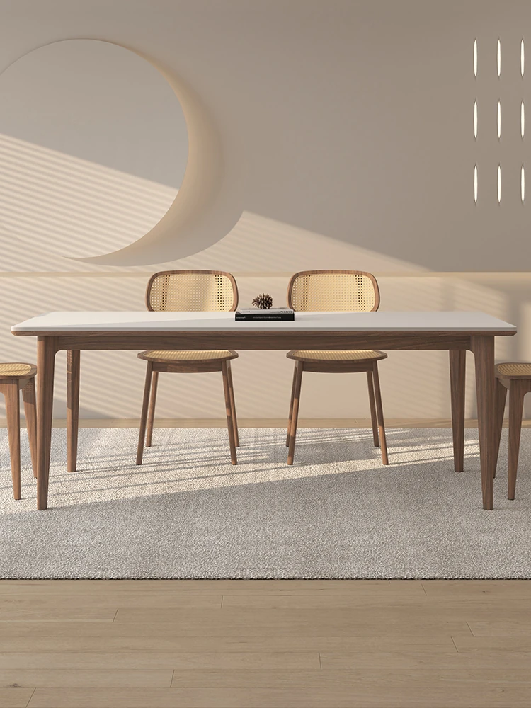 デリフォン無垢材ロックボード長方形ダイニングテーブル 高級ブラックウォルナット色 新中式スタイル 小スペース対応 食事テーブル