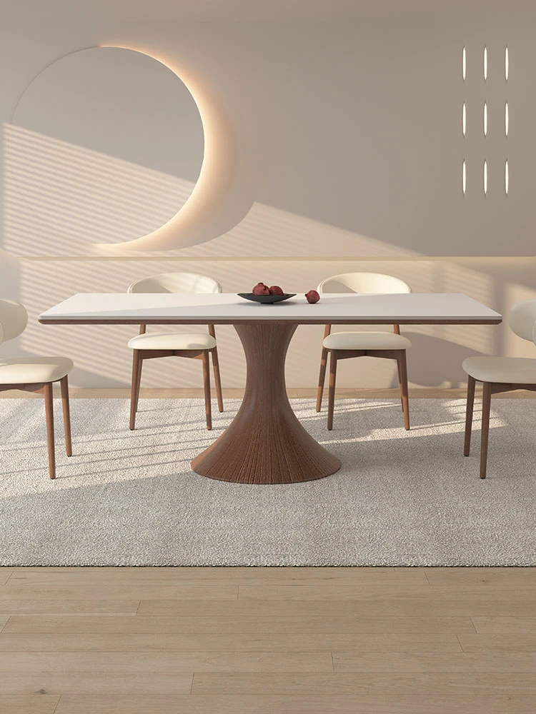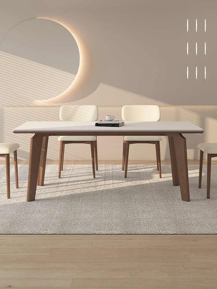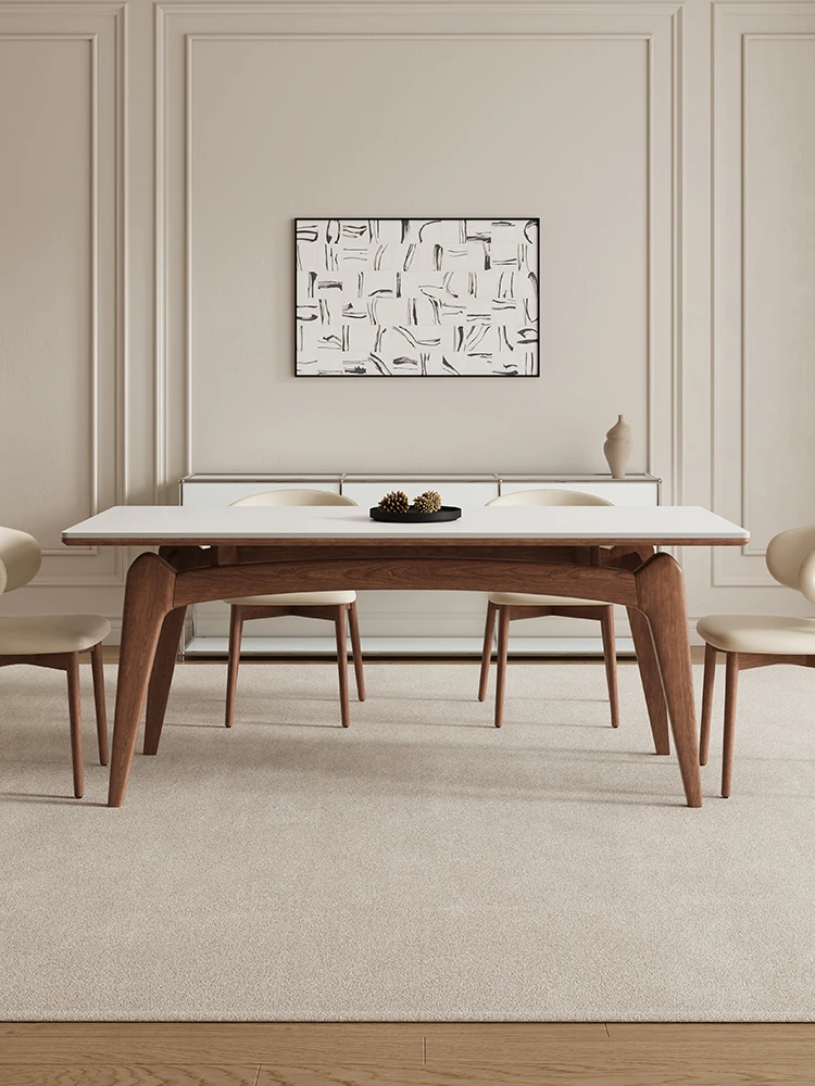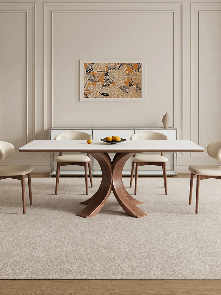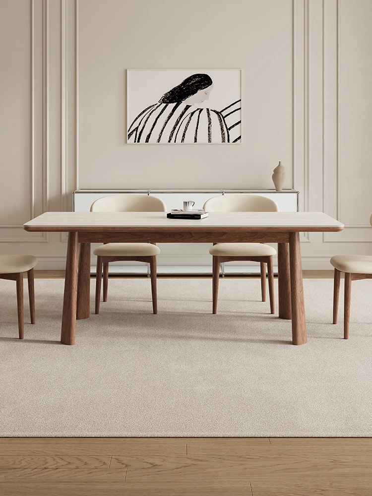 ブラックウォールナットのデリフォン無垢岩板ダイニングテーブル|家用・小型住宅向け|クリーム色のアンティーク風|高級感あふれる天然木製の食卓で、特別なひとときをお楽しみください!