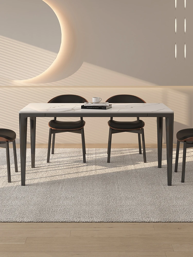 デリフォンの長方形イタリアンミニマリスト軽奢華感ダイニングテーブル - 小型住宅にぴったりのカーボンスチール製、スタイリッシュで高級感あふれる食卓!