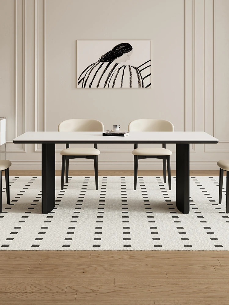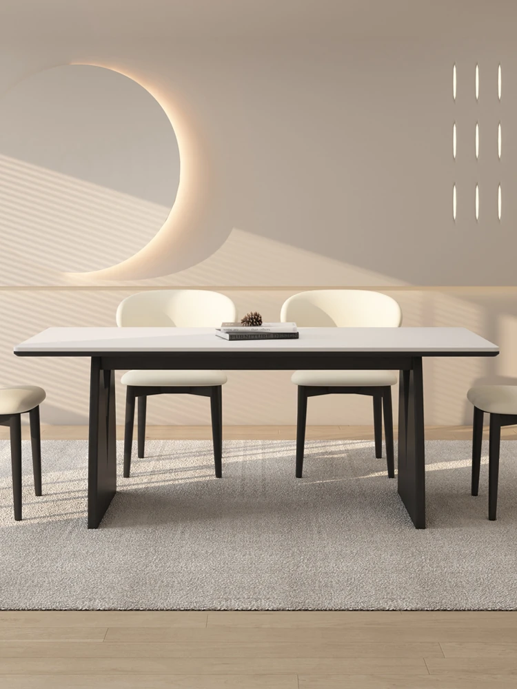 高級感溢れる実木製ロックボードダイニングテーブル - シンプルでスタイリッシュな長方形デザイン、クリームカラーが小さなスペースにもぴったり!インスタ映え間違いなしの人気の食卓、家族や友人と共に特別な時間をお楽しみください。